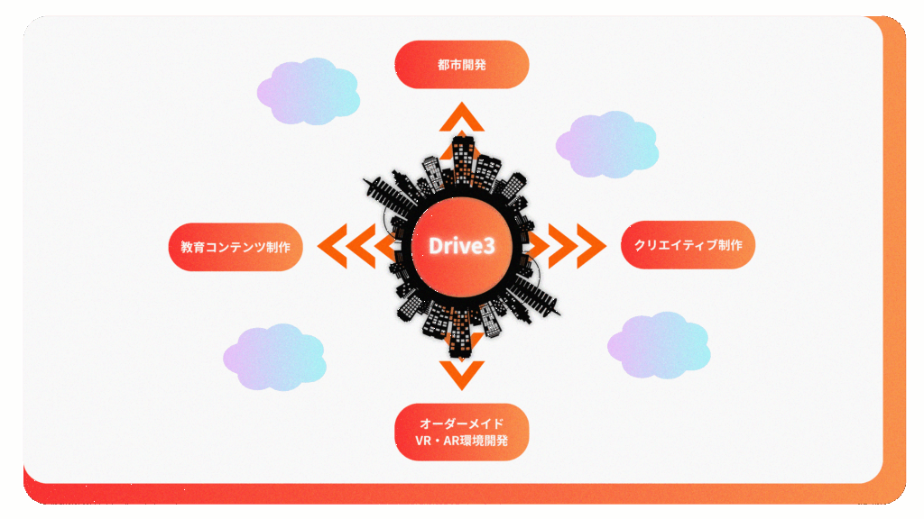 Drive3は人とモノが行き交う現実世界の双子「デジタルツインシティ」で、都市や場所をシミュレートする壮大なプロジェクトです。
